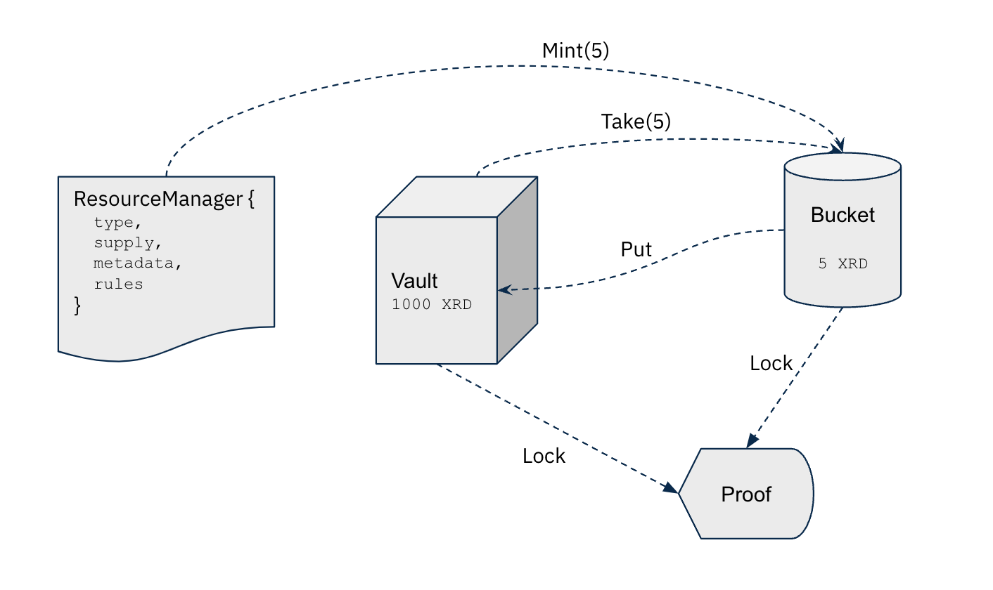 Resources must always be stored in resource containers – either a Vault or a Bucket – and Radix Engine enforces that no resource can ever be lost. In short, Radix Engine ensures that resources behave like "physical things" which is why they are used on Radix for all types of assets. Even the utility token of the Radix network, XRD, is a resource.