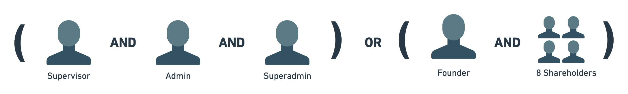 Consider an organization with the above structure which wishes to utilize your blueprint to instantiate a new component. While the single admin badge worked well under the assumption of a single admin, it does not lend itself well at all to such a complex organization structure. Very quickly, many questions begin popping up: who should be given the admin badge? should the admin badge be mintable to allow for the additional people to be included? How to handle the complex auth required here with the "and" and "or" logical operations?